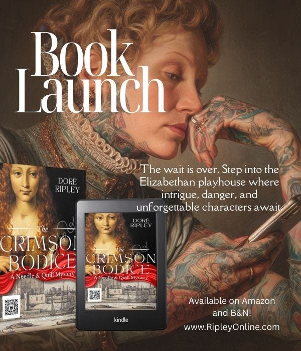 FREE REVIEW PAPERBACK COPIES of The Crimson Bodice are still available for a couple of review readers (U.S. addresses only). A short, honest review is all I ask. Interested? Email me at: dore.ripley@gmail.com.