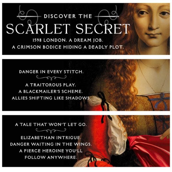 London is bustling in 1598 when Ketren Pryce arrives filled with fashionable dreams. After saving an apprentice who favors gowns over britches, she earns a place as a stitcher in the city’s greatest acting company, the Lord Chamberlain’s Men. But her idyllic situation unravels when she finds a blackmailer’s plot sewn into a crimson bodice, leading to courtly intrigue she must resolve to thwart a lunatic’s doom.